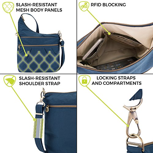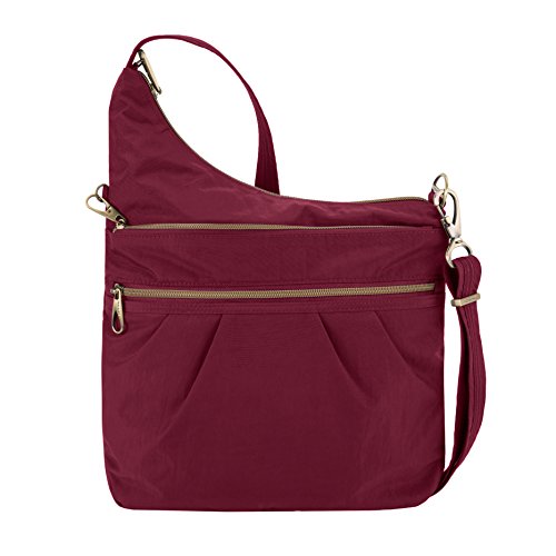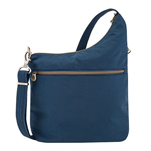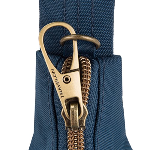 Studio : Travelon Publisher : Travelon Binding : Apparel Product Description Whether you're off to work, shopping or just a fun night out you'll love the versatility of the signature 3 compartment crossbody bag. The deep main locking compartment has 5 RFID blocking card slots, a passport pocket, a zippered wall pocket and a drop pocket for glasses or other frequently needed items. A deep, large rear zip pocket is perfect for maps or documents and can fit a mini iPad. Two front locking zippered compartments provide protection from pickpockets. The locking swivel clasp allows the strap to move freely and it can be attached to a stationary object to prevent a grab-n-go. The slash cut resistant adjustable strap has slider hardware allowing you to find the perfect fit. Made from water stain resistant nylon an accented in stylish antique brass hardware. This bag has a timeless look that makes it perfect for almost any outfit. 0