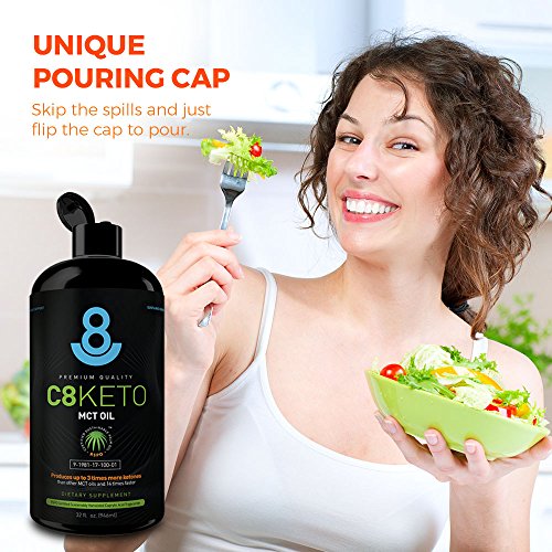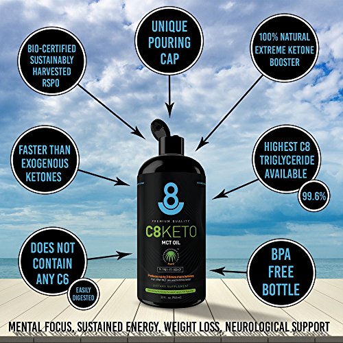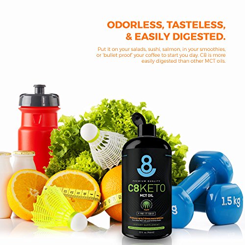 -. Binding : Health and Beauty -. Brand : Keto Bay -. EAN : 0791688610048 -. Feature : EXTREME KETONE BOOSTER -- Lab-certified to contain 99.6% Caprylic Acid, the highest verified concentration available; 3x more concentrated to increase ketones faster than all other MCT oils including Exogenous Ketones to help you lose weight, maintain clear mental focus, increase energy levels quickly and easily / 100% NATURAL -- Purest certified caprylic acid available; THE ONLY C8 TRIGLYCERIDE awarded the RSPO BIO-CERTIFIED logo for being sustainably harvested; you get all the benefits without contributing to rainforest destruction, or Orangutan extinction / CONTAINS NO C6 (unlike most other C8 oils) -- our AMAZING KETO JUICE is more easily digested to eliminate gastric discomfort when used as directed ENHANCES THE TASTE OF EVERYTHING -- Add to salads, sushi, salmon, smoothies, or your fat morning coffee, enhances the taste of your food unbelievably / BPA FREE BOTTLE WITH UNIQUE POURING CAP -- means no spills and no waste -- just flip open to pour / ENHANCES THE TASTE OF EVERYTHING -- Add to salads, sushi, salmon, smoothies, or your fat morning coffee, enhances the taste of your food unbelievably -. IsAdultProduct : 0 -. Label : Salamander Bay LLC -. Manufacturer : Salamander Bay LLC -. MPN : C8101PO -. PackageQuantity : 1 -. PartNumber : C8101PO -. ProductGroup : Health and Beauty -. ProductTypeName : HEALTH_PERSONAL_CARE -. Publisher : Salamander Bay LLC -. Studio : Salamander Bay LLC -. Title : C8 Keto MCT Oil, 32 oz, 99.6% C8, Extreme Ketone Booster, RSPO Sustainably Harvested -. UPC : 791688610048