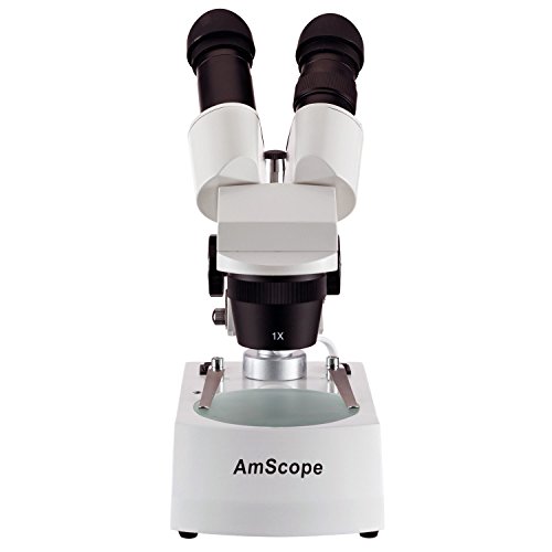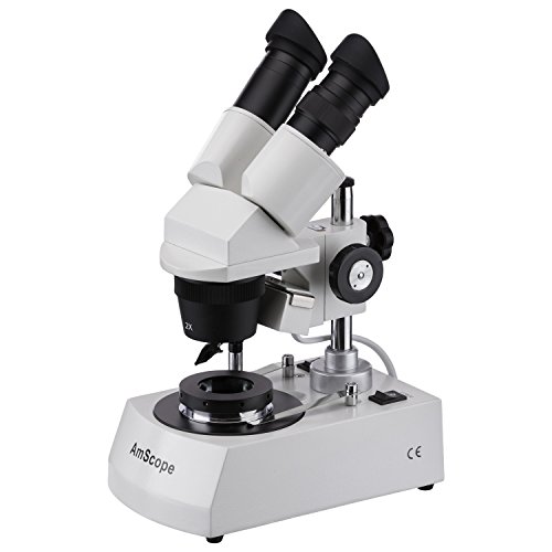 Stereo microscope for home or classroom use enables students and hobbyists to inspect biological specimens, rocks, stamps, jewelry, and large specimens that require handing or manipulation