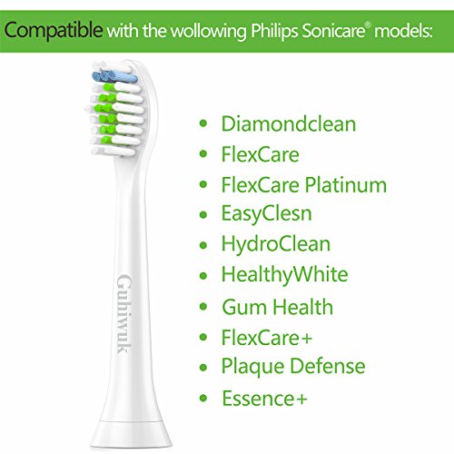 EXCELLENT CLEANING PRECISION: Guhiwuk Sonicare replacement toothbrush heads feature highly effective diamond-shaped bristles to whiten teeth and Up to 7x More Plaque Removal Versus a Manual Toothbrush.