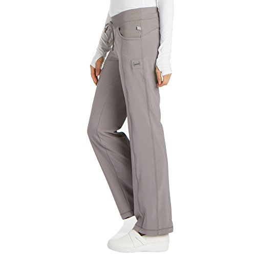 Infinity by Cherokee 1123 Lowrise Straight Leg Knit Waist Drawstring Cargo Scrub Pant- Stone- Large Petite