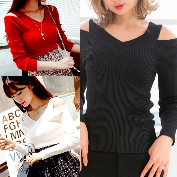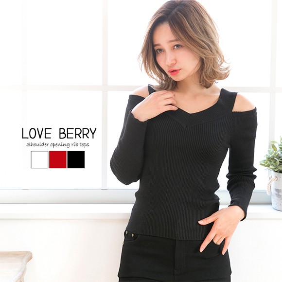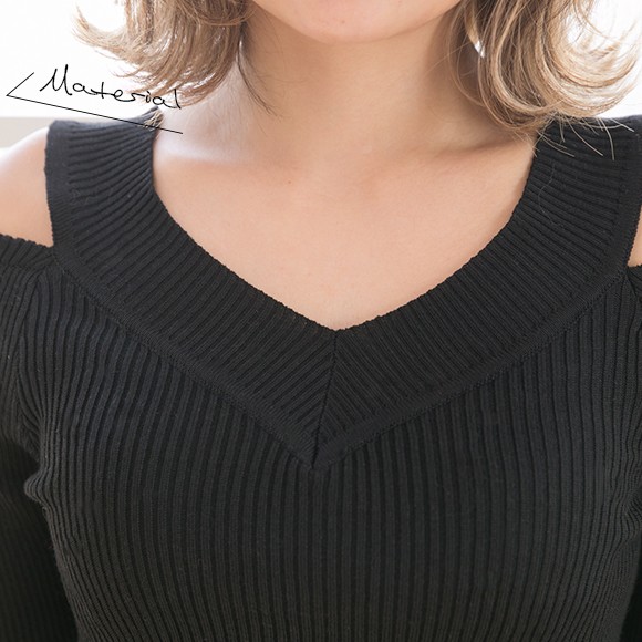 キレイめで洗練されたデザインの、肩開きリブトップスです☆