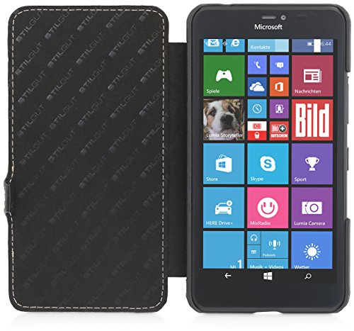 -. Binding : Wireless Phone Accessory -. Brand : StilGut -. Feature : Handcrafted Microsoft Lumia 640 XL case, made of genuine leather / Strong and light: This leather case doesn't weight to your device while providing good protection / This Lumia 640 XL cover has a small clip closure / Precision cutouts for full access to all connectors, ports and the camera / Fits your Microsoft Lumia 640 XL perfectly and elegantly -. Label : StilGut -. Manufacturer : StilGut -. PackageQuantity : 1 -. ProductGroup : Wireless -. ProductTypeName : WIRELESS_ACCESSORY -. Publisher : StilGut -. Studio : StilGut -. Title : StilGut® Book Type, Leather Case for Microsoft Lumia 640 XL