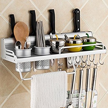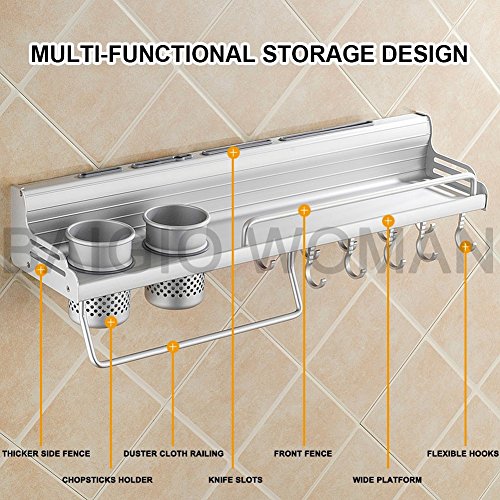 Great storage solution: Convenient and reasonable wall-mounted rack to store frequently used items for easy access like ingredients, utensils and cookware while not taking much coutertop space, an ideal space-saver for apartments, lofts, and condominiuns.