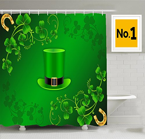 -. Title : Happy St. Patrick's Day Gift Holiday for Celebration Party Decorations in Irish Shamrock Leaf The Lucky Clovers Gold Horseshoe Coin Traditional Bath Decor Hat Fabric Shower Curtain, 66x72