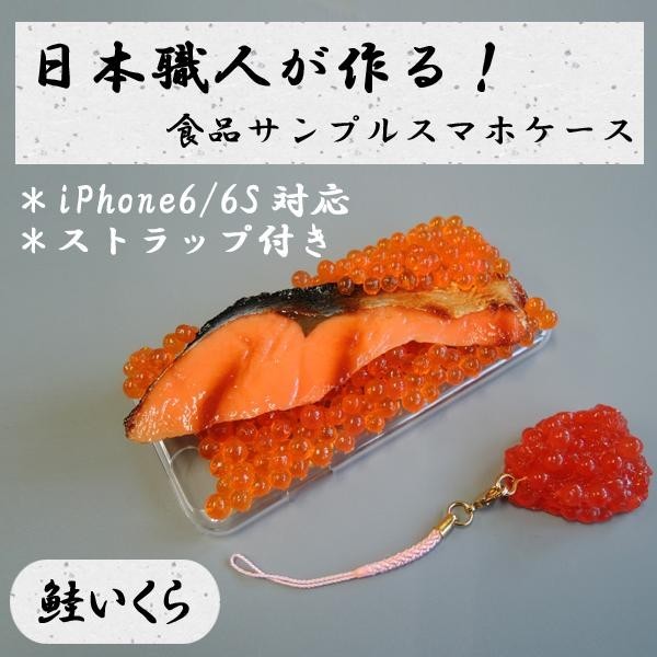 美味しそうな鮭といくらをiPhone6/6Sケースに。すじこのストラップまで付いています☆見ているだけでお腹が空いてしまうほどのクオリティ!食品サンプル好きにはたまらない商品です。 |