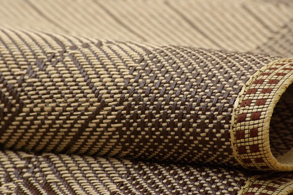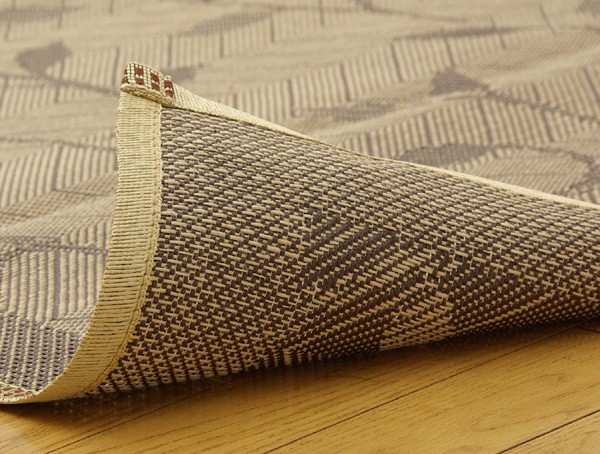 麻糸とポリエチレン糸のジャガード織りのカーペットです。横糸には麻糸を使用しています。熱伝導率に優れ、通気性が良く、夏ものの衣料や寝装具などに用いられることの多い素材です。また適度な光沢があり、強度に優れているのが特徴です。