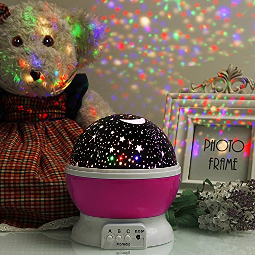 - Beautiful Kids Sleep Lamp:The awesome projection light by Star Fly have romantic Star and Moon with rotating 8 multicolor light,Get closer to the moon and stars, quiet and smart, and give your child a good night's rest with this night light for kid's room