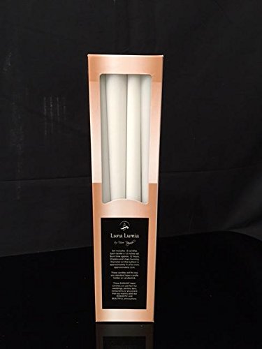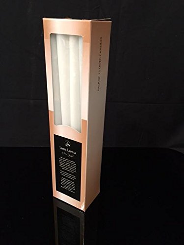 Luna Lumia Stunning Quality Set Of 12 Unscented Taper Candles, Real Wax Elegant Candle Smokeless - Lead Free Candle - Hanukkah Candles - Christmas Candles (12" White)