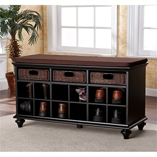 -. Title : Bowery Hill Shoe Rack Entryway Bench in Black