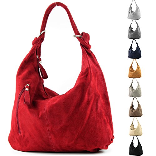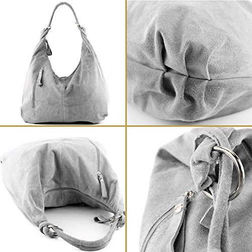 Modamoda de - Made in Italy modamoda de - ital. Ledertasche Damentasche Hobo Bag Schultertasche Wildleder Gross T158