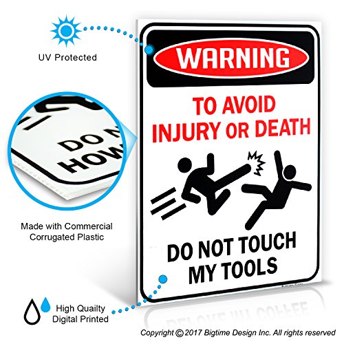 Warning: To Avoid Injury or Death Do Not Touch My Tools Sign | 9" x 12" | Danger Sign Funny Gag Gift Ninja Kick Beware Sign | Corrugated Plastic | Indoor / Outdoor | Made in USA