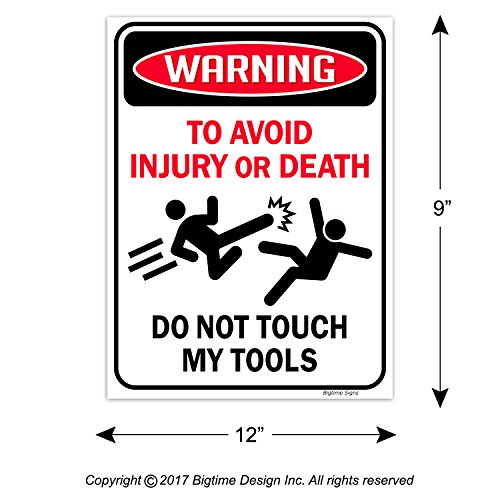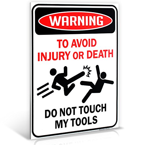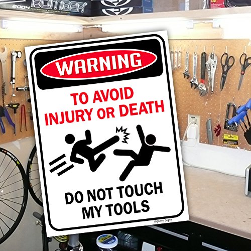 PERFECT SIZE: 9 inch x 12 inch Sign is great for any use! Exclusive Warning: To Avoid Injury or Death DO NOT TOUCH MY TOOLS Beware Sign Design is perfect for your home & office decoration… Also makes a unique gift for a Mechanic, Car Technician, Body Shop or any environment that uses tools!