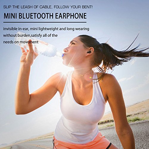 -. Feature : Mini Earbuds: mini wireless bluetooth headphones have very smaller body (20mm) and light weight (4.5g) , it's very convenient to carry when you go out. / Wear Comfortable: scientific design , wearing very comfortable without any pain and not easy to fall off your ears. / Stable Bluetooth Signal: our earphones bluetooth signal is very stable , and the transmission distance is 33 ft without obstacles. / Sweatproof Waterproof: IP67 certified waterproof , don't worry about sweat rain and snow again. / Great Sound Quality: our headset adopted latest passive noise cancelling technology to reduce the background noise . you will get amazed with its deep bass and high definition sound quality.
