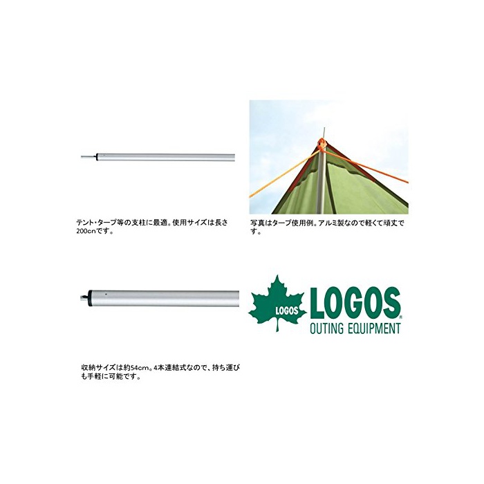 원본상품명: ロゴス(LOGOS) アルミポル200cm 4本ぎ ショックコドあり 1本入り テントタプ用 納コンパクト