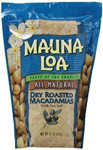 -. Binding : Misc. -. Brand : Mauna Loa -. Feature : Receive 4 Bags 11oz Each / Made with only two ingredients - macadamia nuts and salt - All natural product & kosher snack / Great for snacks or parties / Great for gift giving / Support made in the USA -. Label : Mauna Loa -. Manufacturer : Mauna Loa -. NumberOfItems : 4 -. ProductGroup : Grocery -. ProductTypeName : GROCERY -. Publisher : Mauna Loa -. Studio : Mauna Loa -. Title : Mauna Loa Dry Roasted Macadamia Nuts & Sea Salt 4 Bags