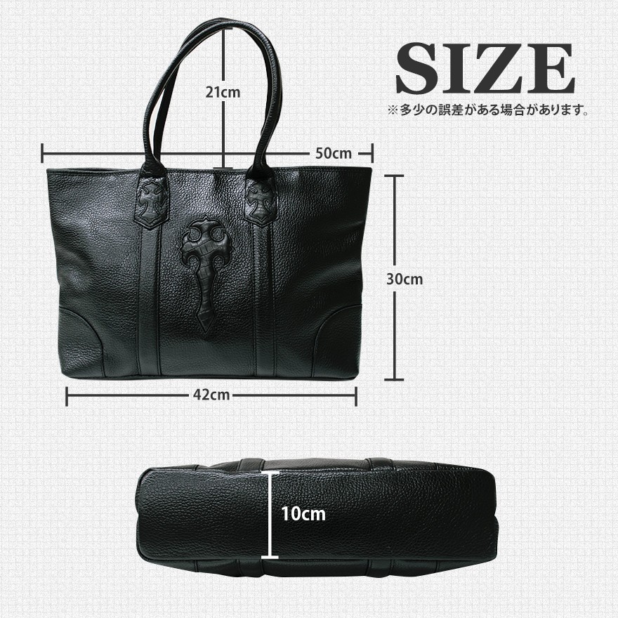サイズ 高さ:30cm × 幅:50cm × マチ:10cm素材 表側:牛革内側:ポリエステル地特徴 とても柔らかく、きめ細かい魅力のカーフレザーを使用しています。