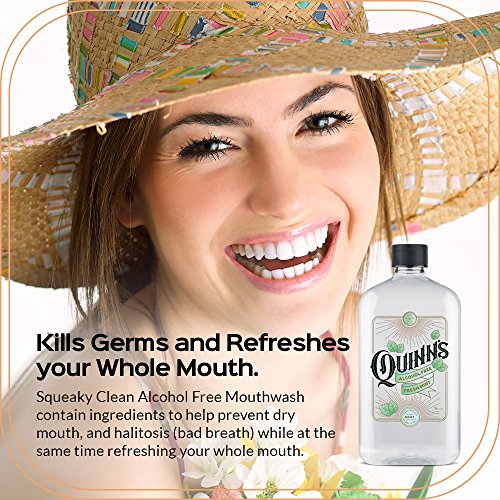 A MOUTH WASH THAT TASTES GREAT Quinn's Mouth Wash is alcohol free. - Doesn't affect your taste buds. - No more burning sensation. - Effectively kills germs while leaving the mouth feeling fresh. - Tastes great. ? Quinn's Alcohol-Free Mouthwash has been designed to sooth and refresh without burning or leaving an unpleasant after taste that alcoholic mouth washes can leave behind. The use of mouth wash has been proven to eliminate or significantly reduce bad breath, commonly known as Halitosis, this is a common condition caused by sulphur-producing bacteria living within the surface of the tongue and throat. Traces of food that collect in the back and creases of the tongue are a breeding ground for this bacteria, which is why effective dental hygiene is necessary in fighting bad breath and other nasty dental issues. With a refreshing, cool mint flavor Quinn's will effectively kills germs and eliminates bad breath. Which studies have shown that up to half the population of the U.S. suffer from. Quinn's Mouth Wash is made in the USA in a state of the art approved laboratory that has been meeting the strictest standards for production for over 20 years. Legal Disclaimer: The product statements on this page have not been evaluated by the FDA. This product is not intended to diagnose, treat, or cure any disease. On our page, we merely give statements that are in the public domain. 100% Satisfaction Guarantee Click the button at the top of this page now to enjoy the confidence of fresh breath. 0 |