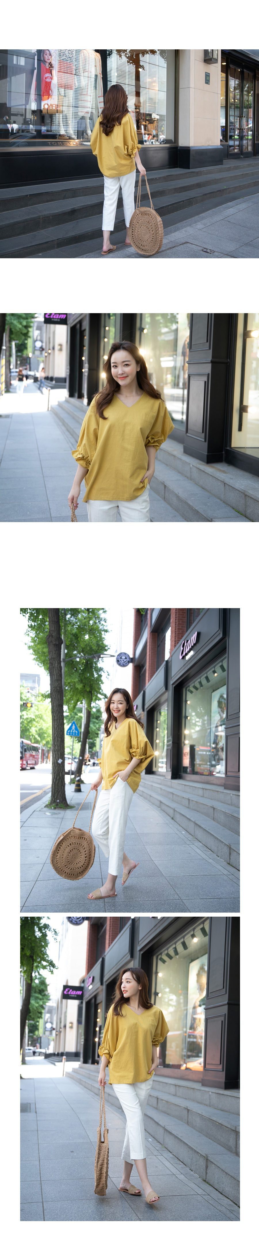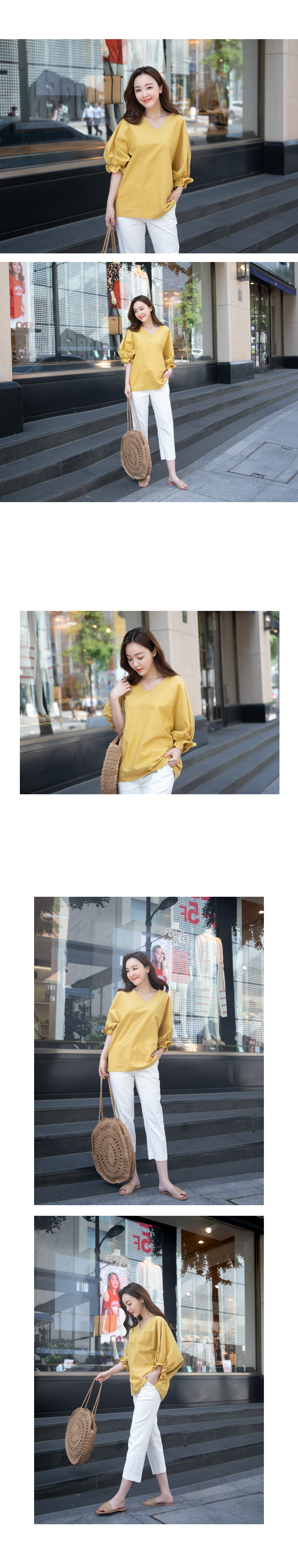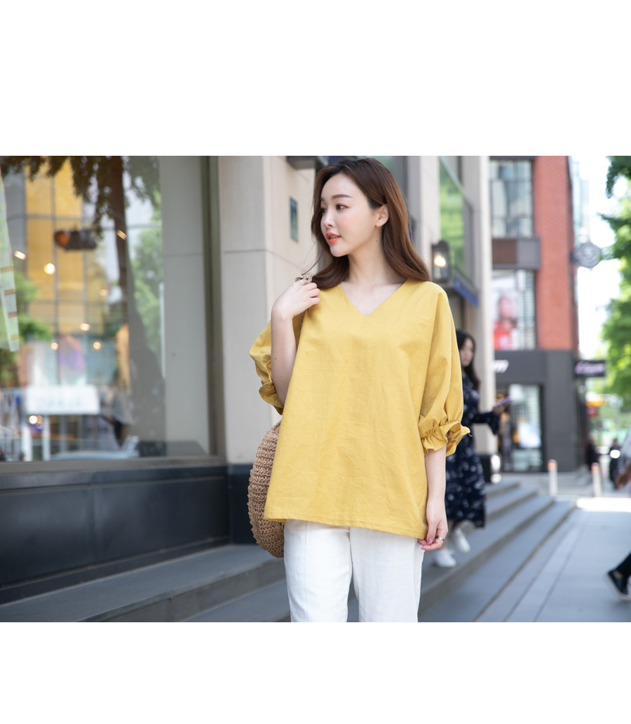 V넥 라인으로 여리여리한 느낌! 이지 데일리룩으로 딱 좋은 린넨 블라우스!