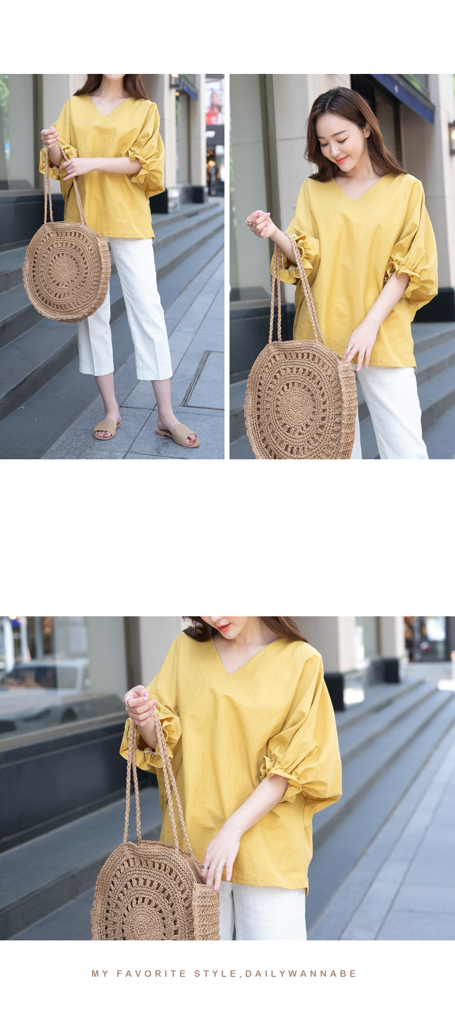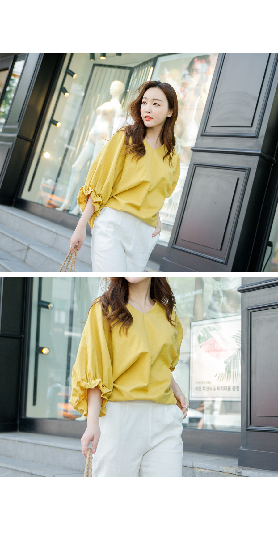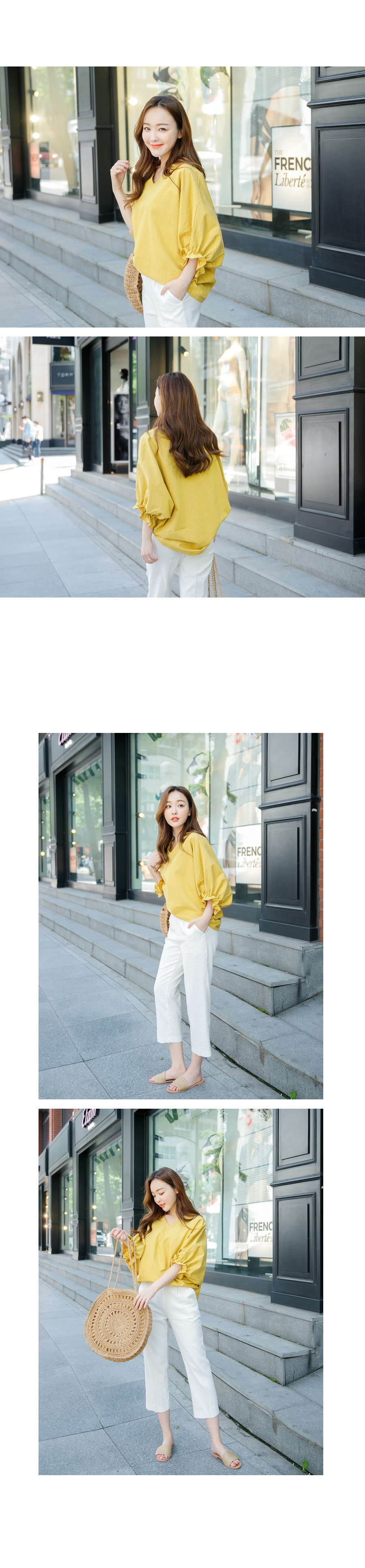 V넥 라인으로 여리여리한 느낌! 이지 데일리룩으로 딱 좋은 린넨 블라우스!