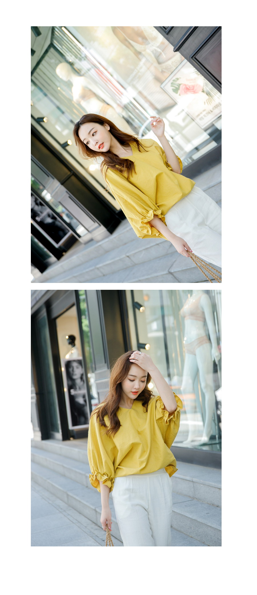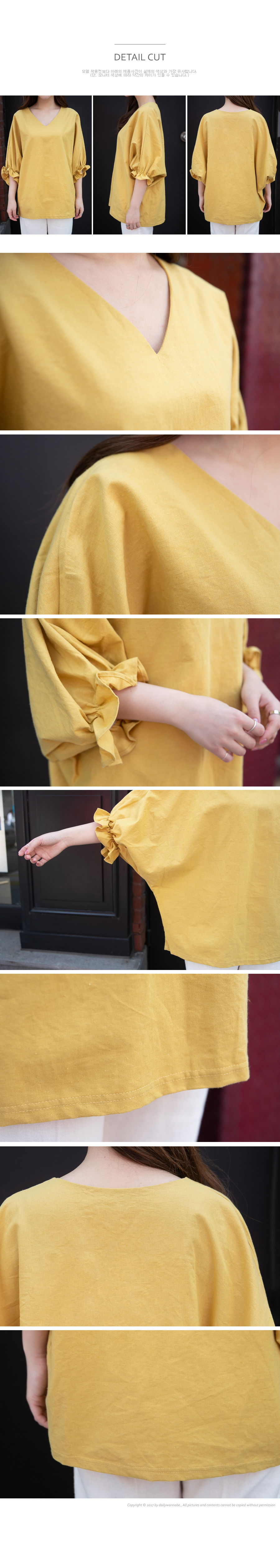 린넨과 코튼 혼방소재의 내추럴 무드에 소매 프릴이 더해져