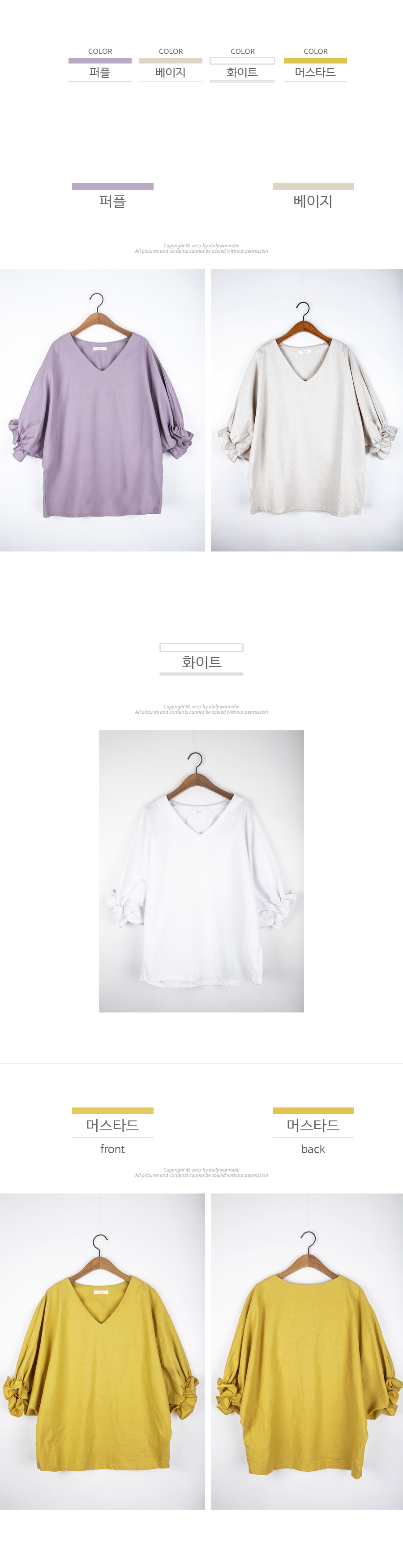 4. 컬러가 있는 의류의 경우 염색이나 위싱공정상의 미비한 색감차이