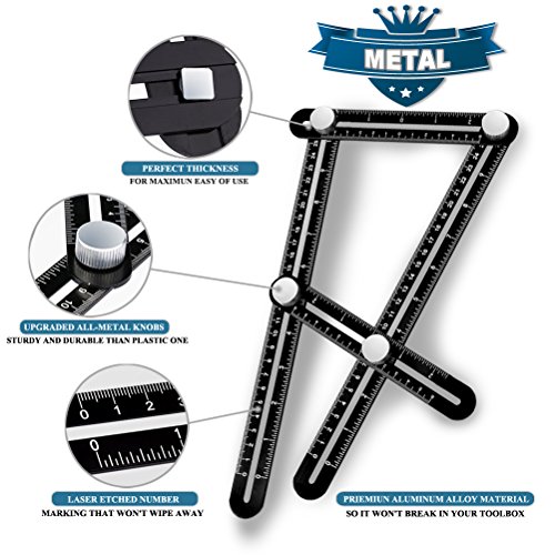 - ✔︎ PREMIUM ALUMINUM ALLOY METAL CONSTRUCTION:The Angle-izer template tool is the ONLY ruler made entirely of metal, including the bolts! Why waste money on a flimsy plastic ruler that will just get broken in your tool bag? Our tool is made of premium aluminum alloy for maximum durability. The Unique Line Level of laser engraving are not worn.