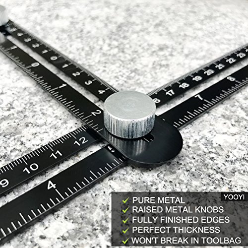 - ✔︎ PERFECT CUTS EVERY TIME:Just place the Multi Angle Measuring Ruler on your work area, Slide the rulers into the shape you need and tighten the bolts. The four-sided ruler mechanism slides and locks into any desired angle as a reusable stencil for endless applications. set at 90-degree angles to space parallel pieces of wood, form into a T-square to align your brick, or even set your own distances for corbelling – The YOOYI Angle-izer template tool will help you get the job done right!