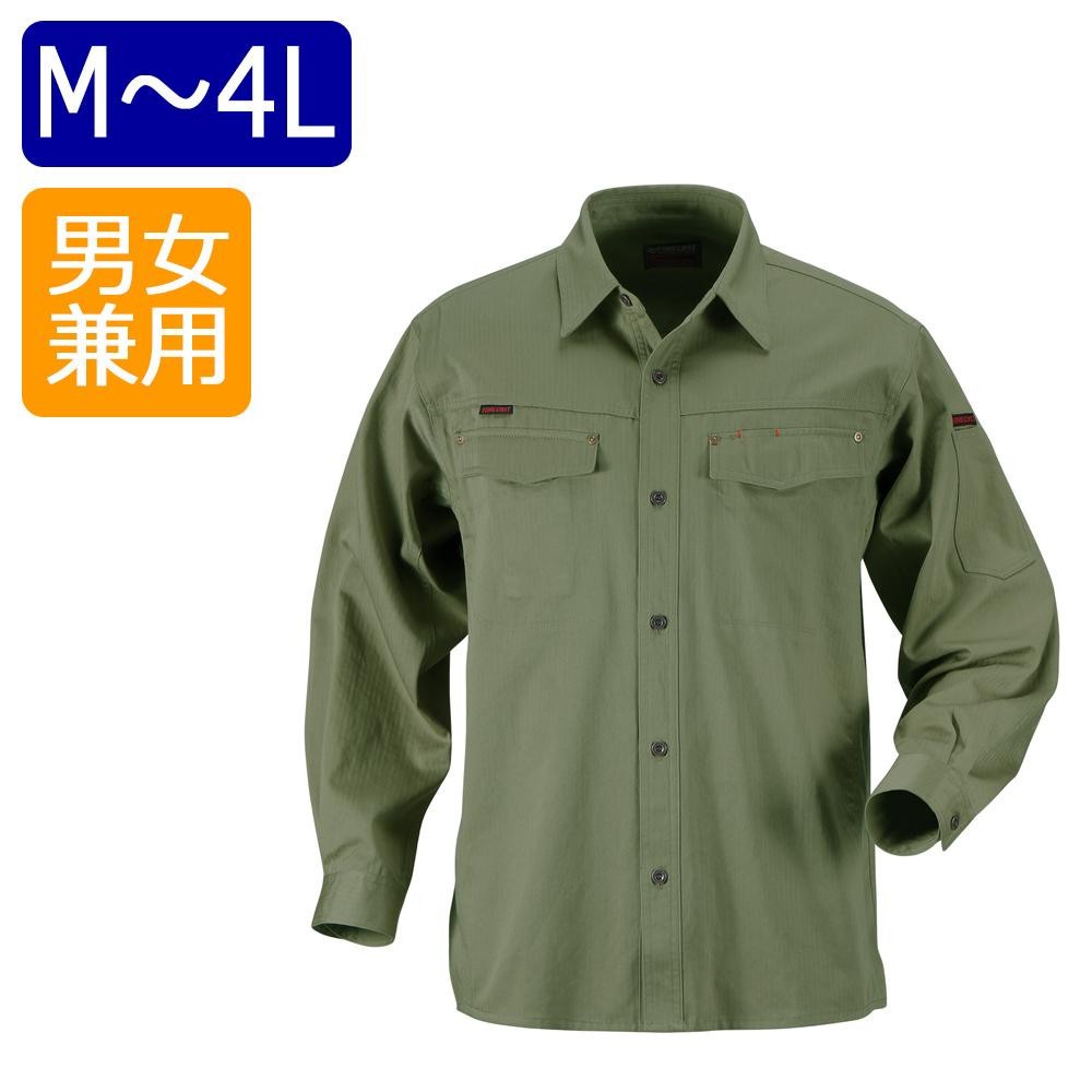 | しわになりにくく丈夫なT/C素材を使用し、織り目をヘリンボーン(杉綾織り)にすることで無骨になりすぎず、いつもと違う雰囲気で着こなせます。肘のダーツや脇のマチなどによって、腕の上げ下ろしもラクラクです。お仕事だけでなくDIYにもオススメの一着です。 |