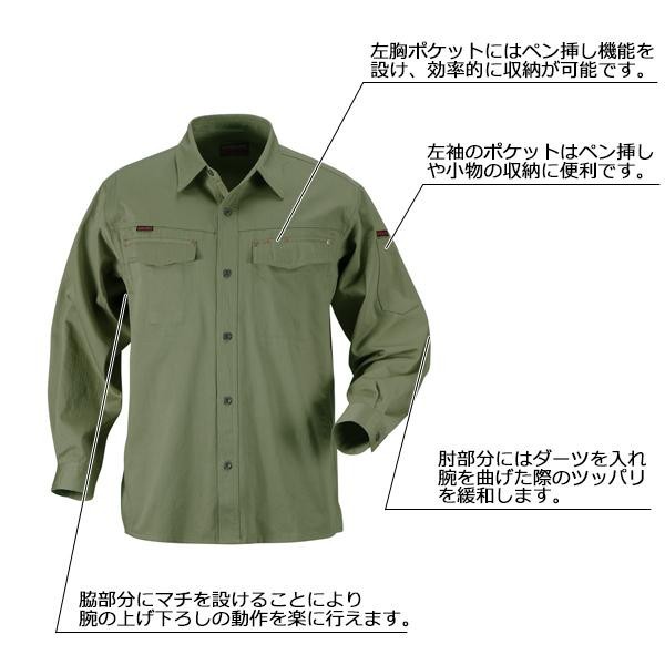 しわになりにくく丈夫なT/C素材を使用し、織り目をヘリンボーン(杉綾織り)にすることで無骨になりすぎず、いつもと違う雰囲気で着こなせます。肘のダーツや脇のマチなどによって、腕の上げ下ろしもラクラクです。お仕事だけでなくDIYにもオススメの一着です。 |