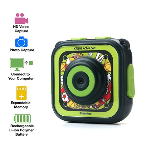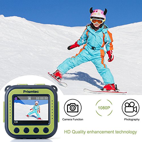 Prismtec kids camera is a simple easy to use action camera for boy girl 4 years old+. Kids camera makes children a director of their own life, recording their childhood wonderful moments with Primstec.• Sport camera recording, The action camera has 3 video settings, Full HD and standard• Original production quality assurance, kids camera capture amazing photos and capture all the action• 1.77'' LCD Color Display, a LCD the back of the camera makes it easy to capture the action and allows you to play the clip back.• Camera waterproof to 100ft, the Kids Action Camera comes supplied with a waterproof case perfect for the beach, pool and in the snow.• Accessories, the Camera comes with all the mounts you need to attach the camera to your bike, scooter, helmet.• In built games and fun, have fun with the in built game (snake) and photo frames that you can overlay over the photos you have captures.• Video Filters, have fun filming in the different colour effects pre-installed on the Action Camera. SpecificationsFunction Mode:Recording,photo,playbackPicture Resolution:1M(1280x960),3M(2048x1536),5M(2592x1944)Video Resolution:HD(1920x1080),(1280x720),640(640x480)Storage Medium:TF card(UP to 32GB)(Not Included)Power Supply:Built-in 1000mAh rechargeable batteryExpandable memory : inbuilt 4mb memory, expand up to 32gb micro SD card.Package1* Kids Action Camera1*Waterproof Case1*Neck Strap2*Helmet Belt1* Hand Wrist Strap1* Handlebar Mounts1*3M Fixed Tape1*Helmet Stand Mounts1* USB Cable1*Use Manual💝 Random Gift DIY Stickers creative personalize thinking for kids toys,Bikes,Pencil Boxes.Feature