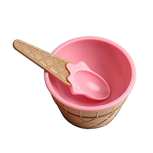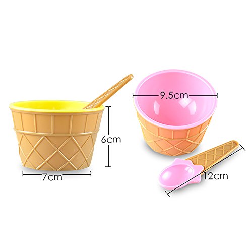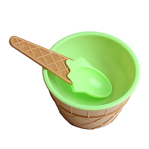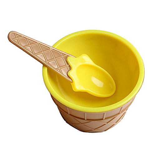 -. Title : Lingstar Plastic Ice Cream Dishes 1pcs and Spoon 1pcs Set for Children Yellow