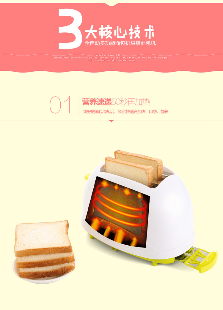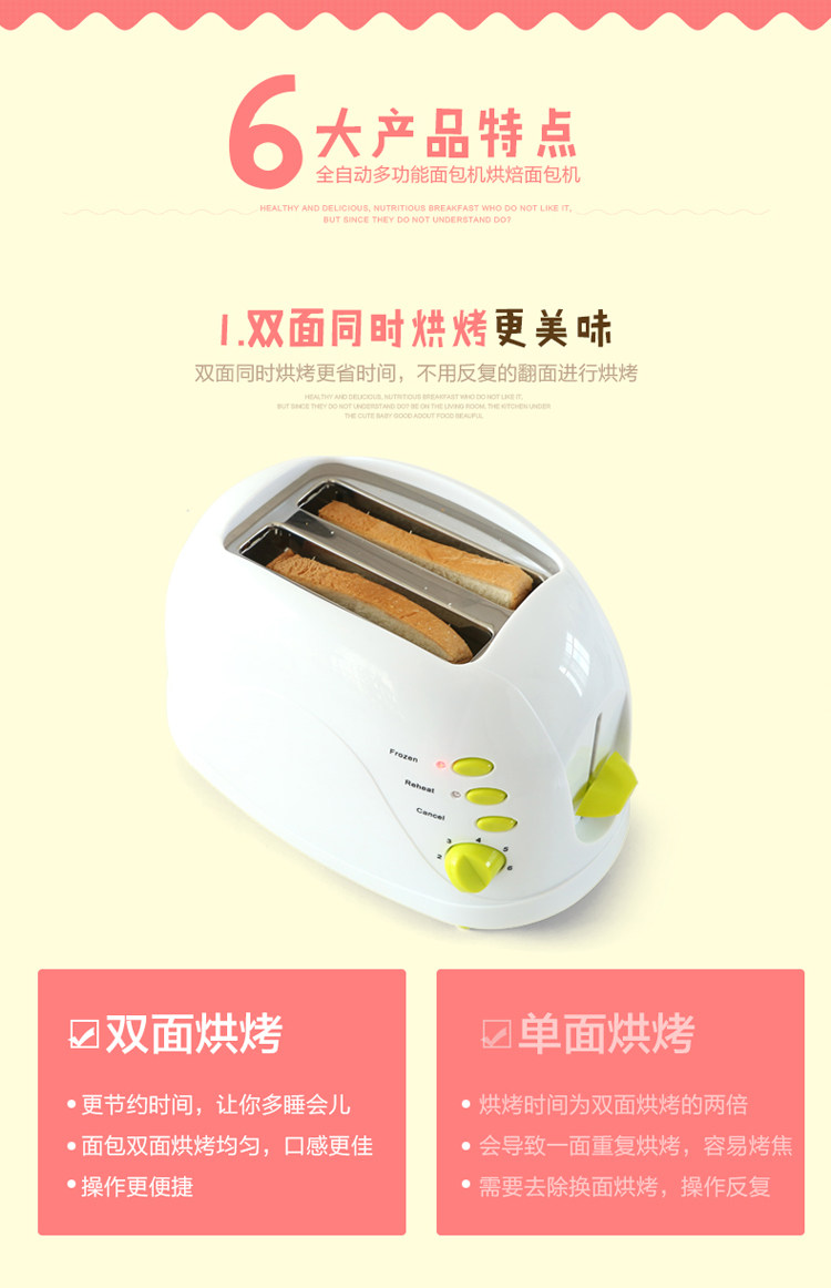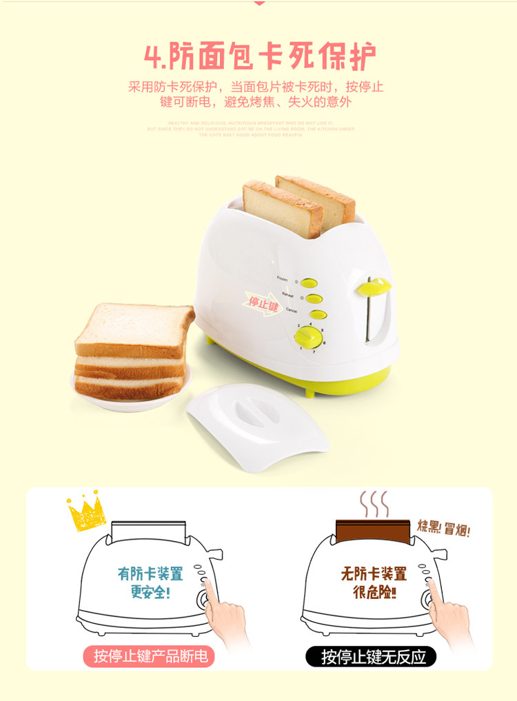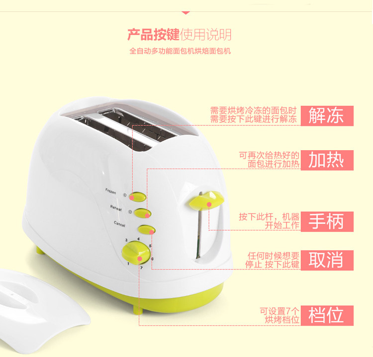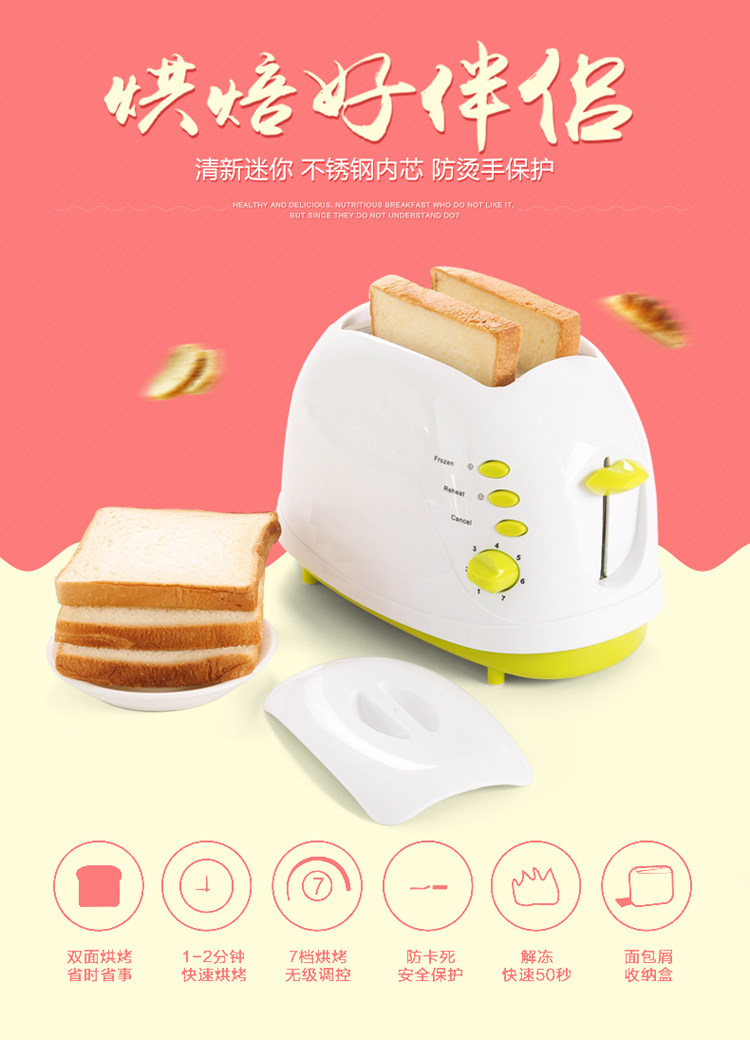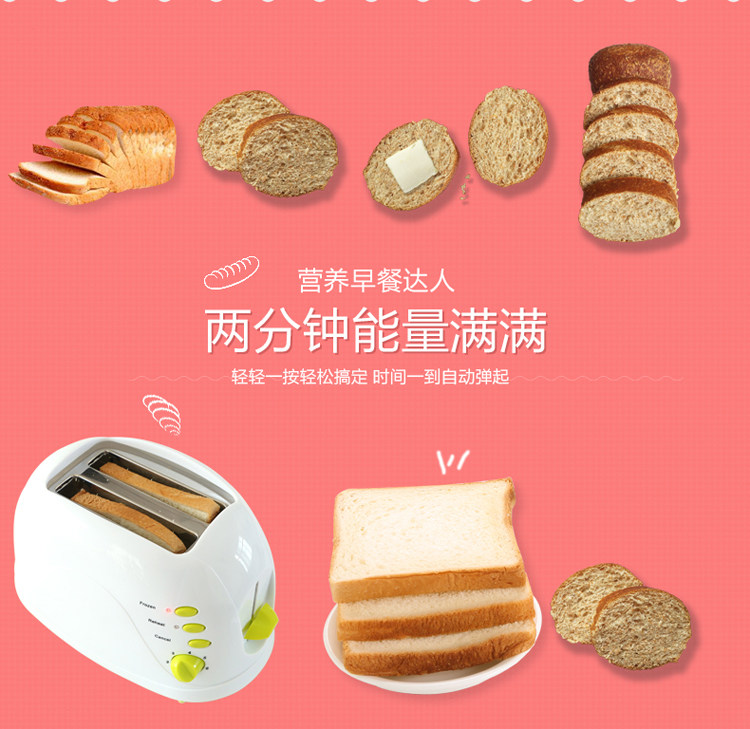 烤面包机2片家用全自动早餐吐司机带防尘盖多功能多士炉