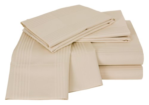 Elite Home Collection Sedona Stripe 400 Thread Count 6-Piece Sheet Set, King Size, Antique Ivory