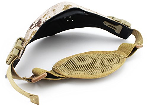 -. Feature : The Face mask made of EVA(cushion) + 900D Nylon(outside) + waterproof cloth(inside). / Lightweight design with holes, Great Air Ventilation,Breath without difficulties. / Adjustable elastic strap to get your ideal length,Compatible with most eyes protection glasses / goggles. / High quality mask through ANSI z80.3 falling ball test, with -10 degrees -- 42 degrees temperatures, resistance to 700fps. / Extremely suitable for the CS shooting games,paintball,hunting,airsoft and other outdoor sports and military use.