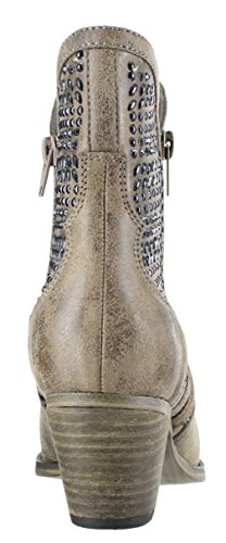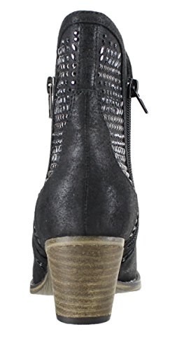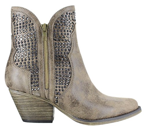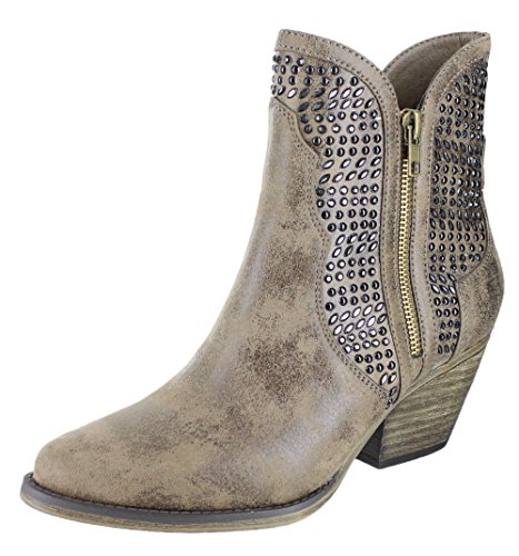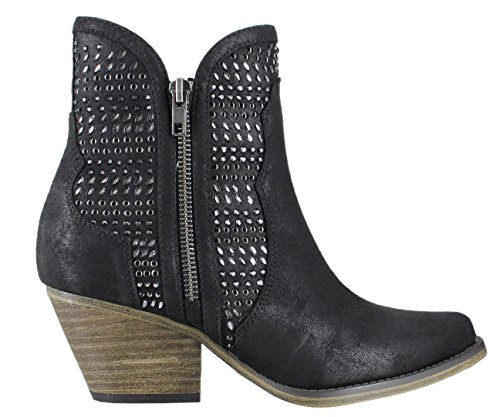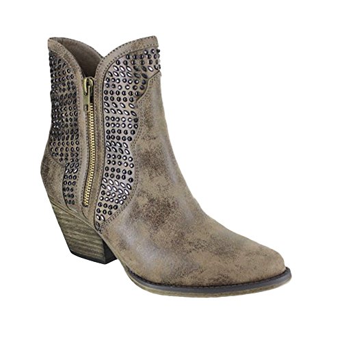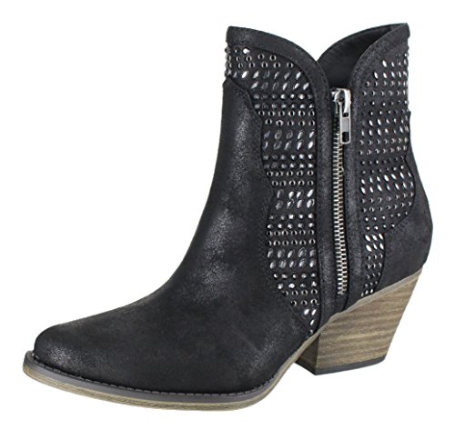 Studio : MIA Publisher : MIA Binding : Apparel Product Description The Austin ankle boot by MIA is the perfect combination of Western and edgy, featuring silver and black hardware embellishments, a double side zipper, a stack heel and a slightly pointed toe perfect for the daring fashionista. 0