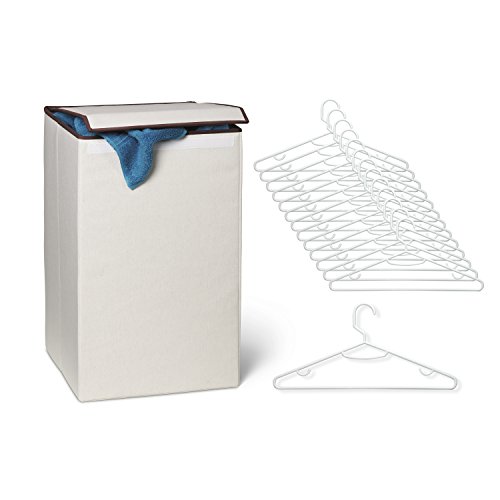 Honey-Can-DO HMPX06939 Laundry Organization Kit, Collapsible Hamper and 15-Pack White Plastic Hangers
