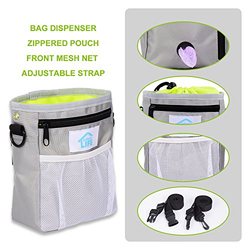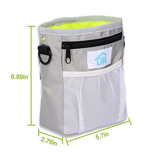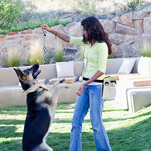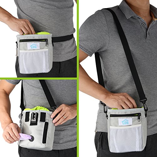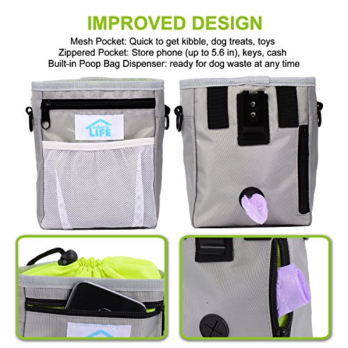 -. Title : Adoric Life Dog Treat Pouch, Pet Training Bag with 3 Ways to Wear, 2 Zipper Pockets for mobile phone and other personal stuffs, 1 Extra Large Bag for Pet Toys and Food, Built-in Waste Bags Dispenser