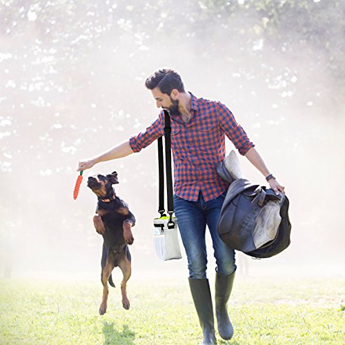 -. Feature : Multiple-Function Pockets: A deep pocket with several subsidiary pockets can hold a lot dog training treats, dog toys and foods and keys, phone, tissue and something you need to carry with. / 3 Ways to Carry: Adjustable shoulder strap and belt can be adjusted to suitable size for shoulder and waist; you can take it as a single-shoulder bag, messenger bag or waist bag. / Upgraded Design: Enlarged zipper pocket could provide enough space for smartphone less than 6 inch. / Durable Material: Made from High quality 600D oxford fabric, portable and lightweight; more durable for daily wear and tear and it won't show the dirt while easy to clean. / Wide Application: The dog treat pouch 5.1 × 2.3 ×7 inches, not only use for dog training when you walk the dog outside, but also for running, walking, cycling, traveling and hiking, etc.