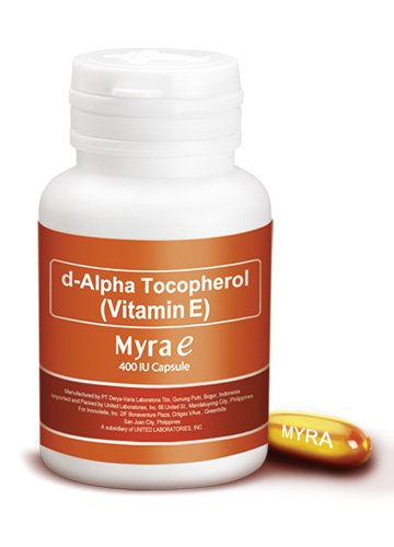 -. Binding : Health and Beauty -. Brand : Myra E -. EAN : 0725481128264 -. Feature : Vitamin E is a powerful antioxidant that works on the inner layers of the skin by repairing and renewing it, so what comes out is skin that's healthy and beautiful. Start on the INSIDE with Myra cap -. IsAdultProduct : 0 -. Label : Unilab -. Manufacturer : Unilab -. MPN : Myra E -. PackageQuantity : 1 -. PartNumber : Myra E -. ProductGroup : Health and Beauty -. ProductTypeName : HEALTH_PERSONAL_CARE -. Publisher : Unilab -. Studio : Unilab -. Title : Myra E 400 IU Vitamin E d-Alpha Tocopherol (30caps) -. UPC : 725481128264