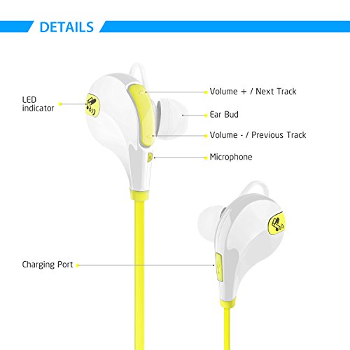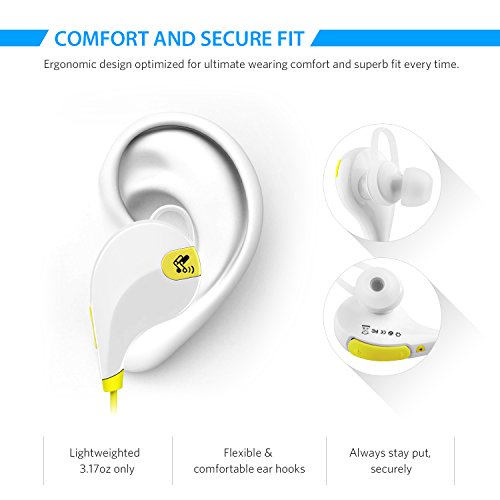 SoundPEATS Bluetooth Earphones Wireless Sport Headphones Sweatproof for Running (Bluetooth 4.1, 6 Hours Play Time, Stereo, Secure Ear Hook with Cable Clips) - White&Yellow B00UCSHPE4