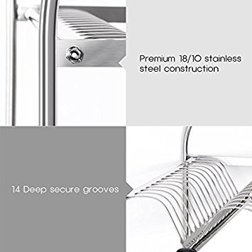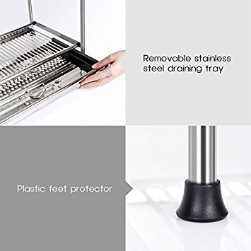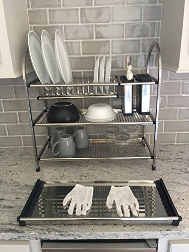 Roloz Dish Rack, Drainer, Drying Rack, Holder, 3-Tier, Kitchen Plate Cup Draining Storage with Tray, Stainless Steel