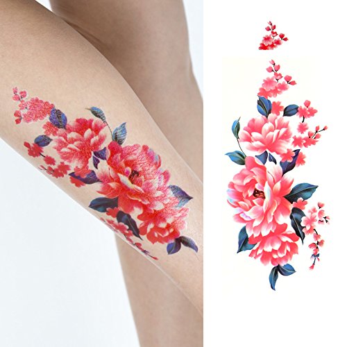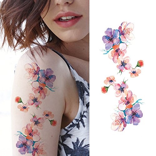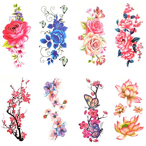 Oottati 8 Sheets Colorful Temporary Tattoos Arm Flower Lotus Rose Ink Cherry Plum Blossom