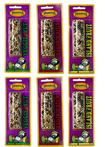 Higgins Gourmet Avian Treat Sticks 3 Flavor 6 Stick Variety Bundle: (2) Higgins Veggie Nut Sticks, (2) Higgins Ragin' Cajun Sticks, and (2) Higgins Island Fruit Sticks, 2 - 2.2 Oz. Ea.