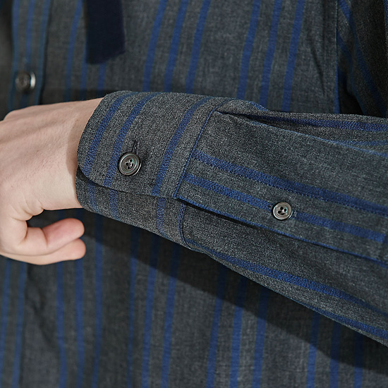 - 투톤 세줄 스트라이프 패턴이 멋스러운 남성 셔츠.