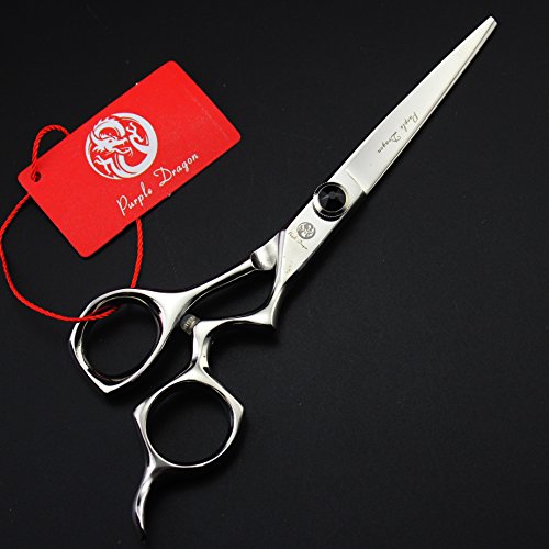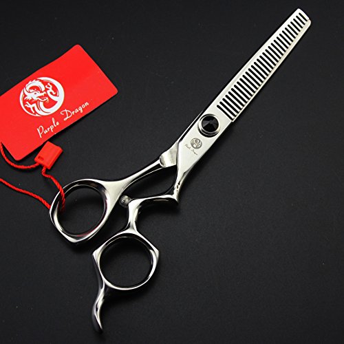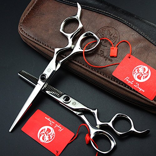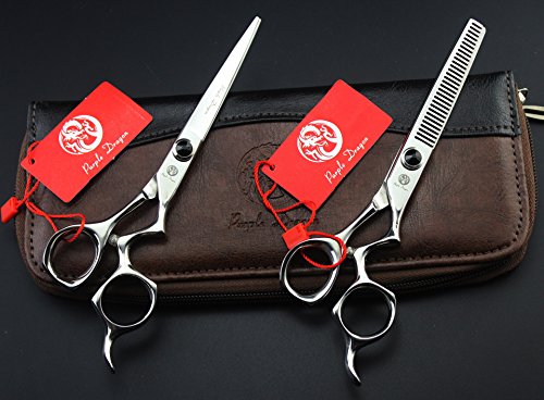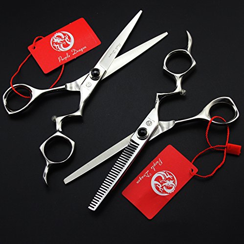 Purple Dragon 6.0 inch Personality Bending Handle Black Rotating Screw Barber Hair Cutting and Thinning Scissors Set