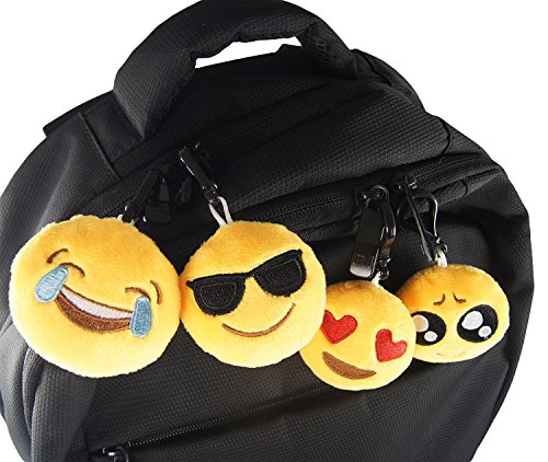 - Great backpack decorations. Clip-on design, easy for kids to hang these mini emoticon pillows. .