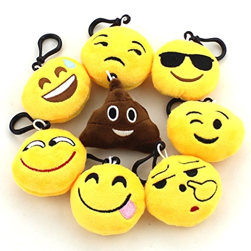 TOPBY 2" Emoji Mini Plush Pillows, Emoticon Keychain Decorations, Kids Party Supplies Favors, Class Birthday Present Bag Fillers (8 Pack)