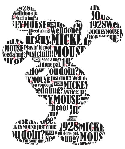 Bring the magic of Disney's iconic Mickey Mouse to any wall with this clever typographic wall decal. Several of Mickey's memorable phrases, like "aw gee!", combine together to create a silhouette of his figure. Additional silhouette decals are included and can be used to decorate accessories, furniture, laptops, or any other smooth surface. A great decorating idea for Disney-themed bedrooms for kids, and an excellent gift for that Mickey Mouse fan in your life!