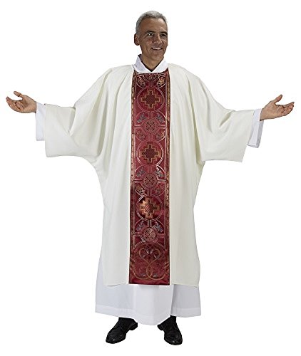 Studio : AT001 Publisher : AT001 Binding : Jewelry Product Description Exclusive artwork inspired by the Book of Kells. This dalmatic comes with a plain round neck and includes a matching inner stole at no additional cost. -- Polyester/Poly Satin -- 59" W x 49" L 0